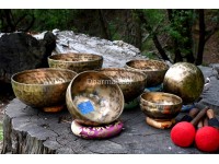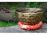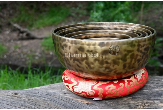 Each bowl is hand-forged and tuned during the full moon in Nepal. Minor variations in tone, finish, and engraving naturally occur and reflect the authenticity and spiritual uniqueness of each handcrafted set.